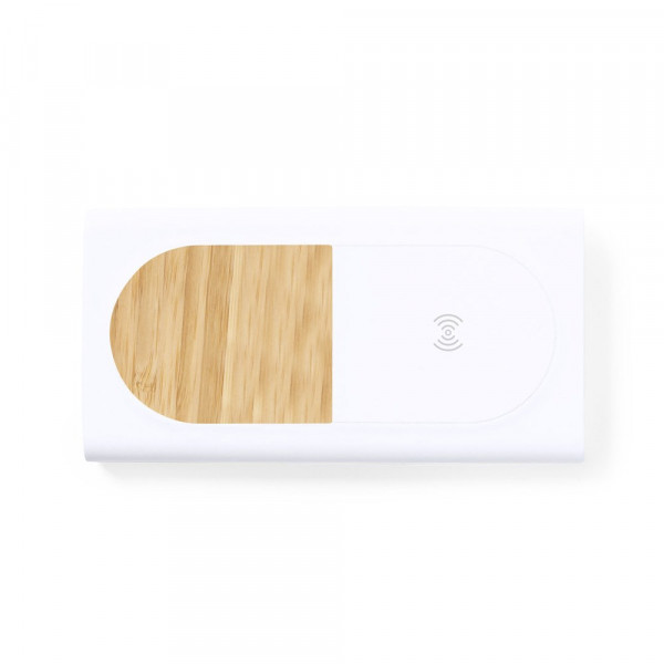 Linie "Natur", externer Zusatzakku mit integriertem drahtlosen Ladegerät und 15-W-Schnellladefunktion. Gehäuse aus einer Kombination von Bambus und PLA (Polymilchsäure), die aus 100% natürlichen Ressourcen wie Maisstärke, Yucca oder Zuckerrohr gewonnen wird und am Ende ihrer Lebensdauer zu 100% kompostierbar ist. 8.000 mAh Kapazität, mit Ladestatusanzeige. Dualer Typ-C-Eingangs-/Ausgangsanschluss, Micro-USB-Eingang und 1 USB-Ausgang. Micro-USB-Ladekabel im Lieferumfang enthalten und kompatibel mit Geräten, die mit kabelloser Ladetechnik ausgestattet sind. Große Branding-Fläche und präsentiert in einer attraktiven Öko-Design-Box. Mit PLA-Emblem auf dem Artikel.Alle unsere externen Zusatzbatterien haben eine reale Kapazität und bestehen aus nicht recycelten Batterien der Klasse A mit einer Lebensdauer von mindestens 500 Ladezyklen, die den CE-Vorschriften entsprechen. Darüber hinaus werden sie gemäß den RoHS-Normen und unter Einhaltung der folgenden Sicherheitsanforderungen hergestellt: Überladungsschutzsystem der Powerbank. Vollständiges Entladeschutzsystem, das die Haltbarkeit der Powerbank erhöht. Blockiersystem zur Vermeidung von Kurzschlüssen. Konstantes Ladetransfersystem, entsprechend der Kapazität des Zielgeräts".