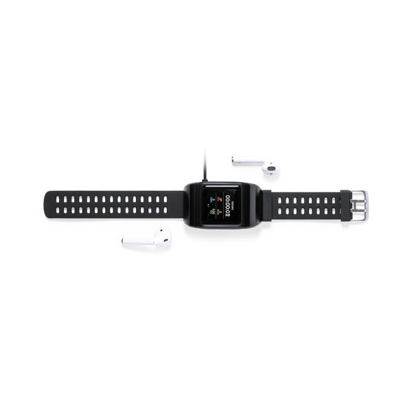 Multigadget-Smartwatch mit im Gehäuse integrierten Kopfhörern. Mit Bluetooth®-Verbindung und lässigem Design, TPU-Armband und 1,30-Zoll-TFT-Touchscreen ist sie das perfekte Gadget für alle Arten von Sport, Freizeit und Alltagsaktivitäten.Spritzwassergeschützt, mit APP erhältlich für iOS und Android. Wiederaufladbar über USB (Kabel im Lieferumfang enthalten) und präsentiert in einer attraktiven Designbox. Gebrauchsanweisung in Englisch und Spanisch erhältlich.