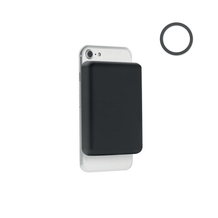 Magnetische Powerbank 5000 mAh mit kabellosem Ladegerät 15 W. Ausgang: DC 9V/2,22A (20 W), ideal zum schnellen Aufladen. Inkl. magnetischen Metallring zur Unterstützung anderer nicht-magnetischer, wireless aufladbarer Telefone. Eingang/Ausgang: Typ-C.